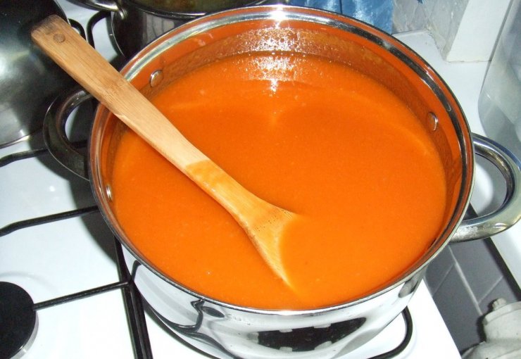 - Поставить на огонь, довести до кипения. Варить 20-30 минут, постоянно помешивая. Если образуется светлая пенка, то ее лучше аккуратно убрать.