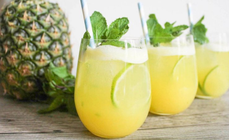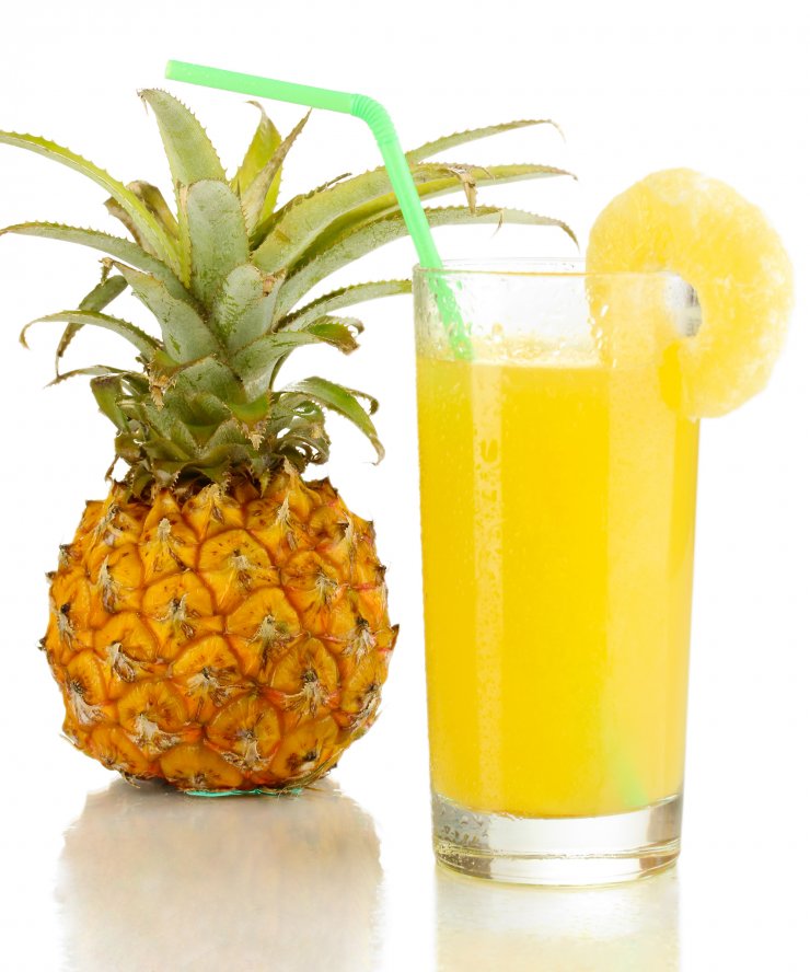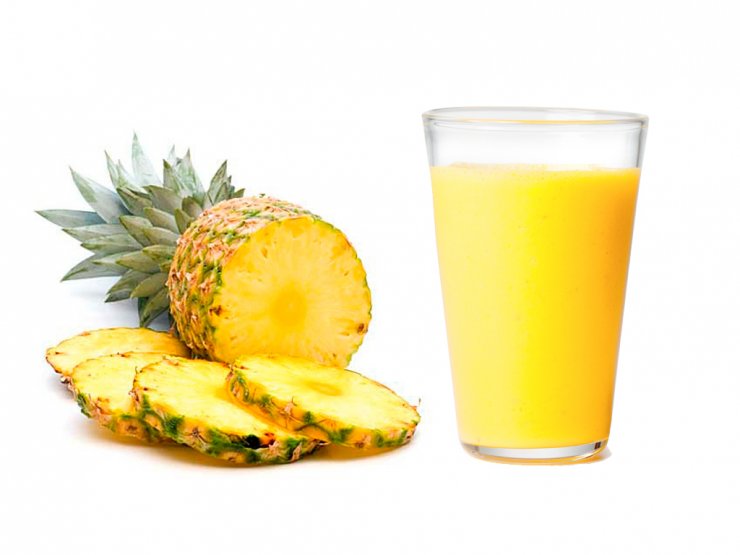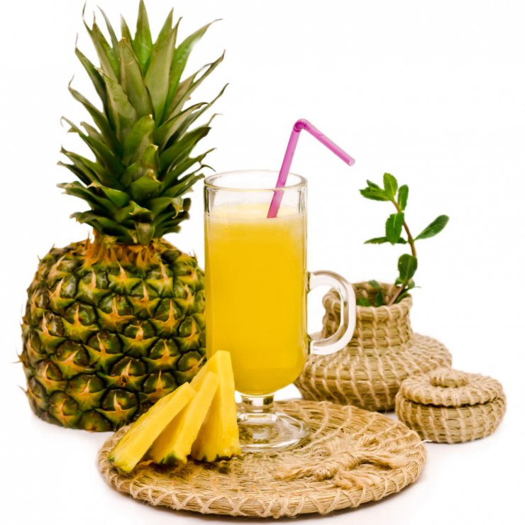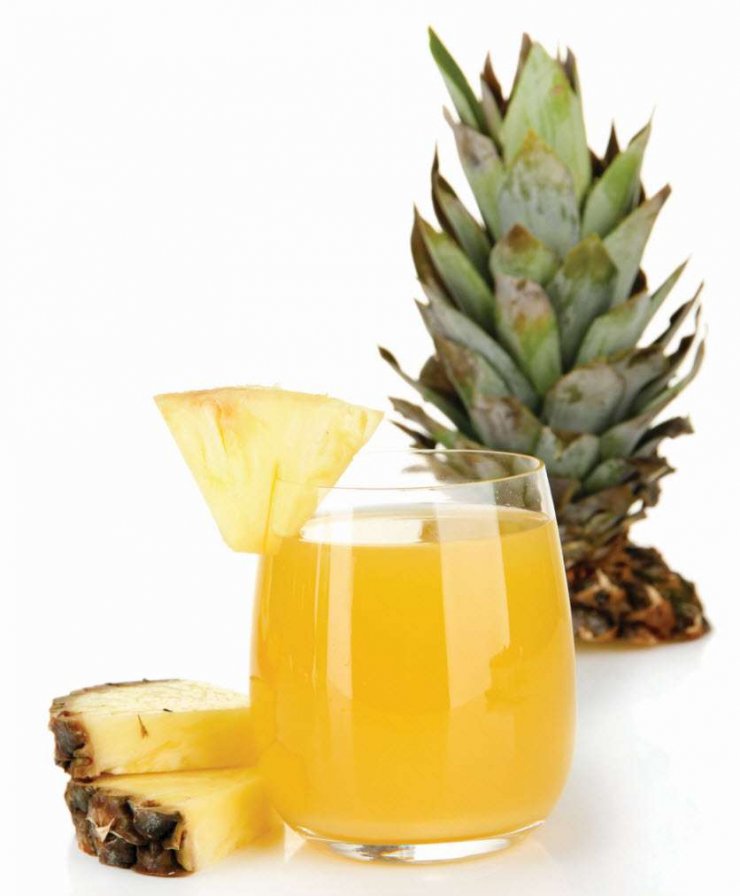 Фото ананасового сока в красивых бокалах часто появляются в статьях о похудении, и не зря. Благодаря находящемуся в напитке бромелаину, переваривание белков и жиров в желудке происходит значительно быстрее и легче.