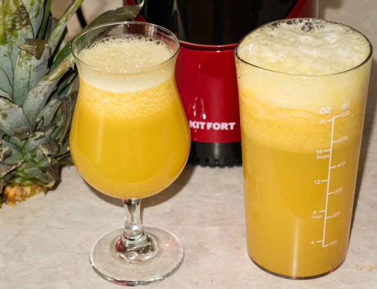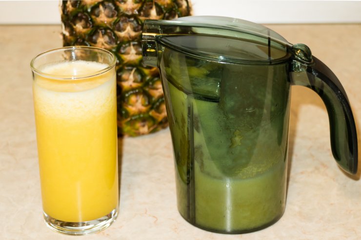 Чтобы приготовить домашний ананасовый сок, важно не только правильно выбрать сырье для него, но и иметь соковыжималку, так как из-за строения мякоти, по-другому добыть сок не получится.