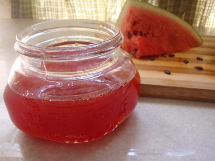 Чтобы сделать арбузный сироп, в арбузный сок добавляют сахар и уваривают его. После остывания получается сироп, по консистенции напоминающий мёд.