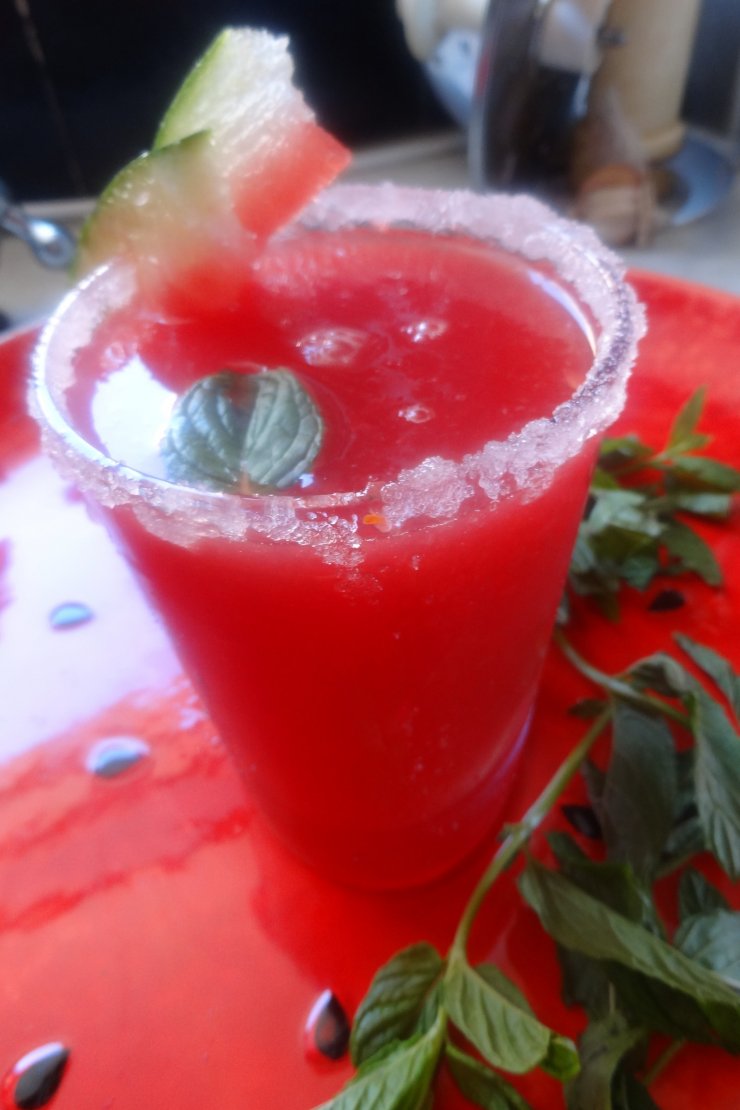 Для приготовления этого тоника смешайте 200 мл арбузного сока, 100 мл водки, 1 ст. ложку морской соли и столько же мёда, все хорошенечко перемешайте, накройте марлей и дайте настояться в закрытом от лучей солнца месте.