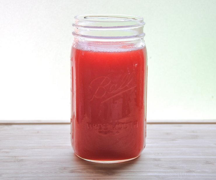 Выжатый сок соедините с сахаром, добавьте лимонную кислоту, прокипятите 7 минут, затем залейте в простерилизованные банки и закатайте — арбузный сок на зиму готов!