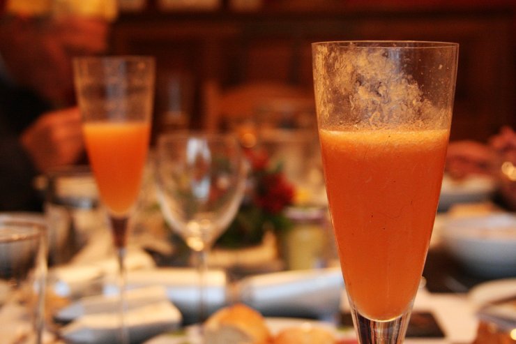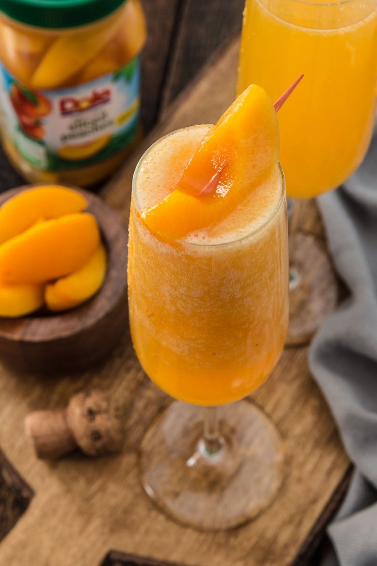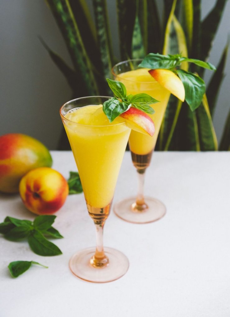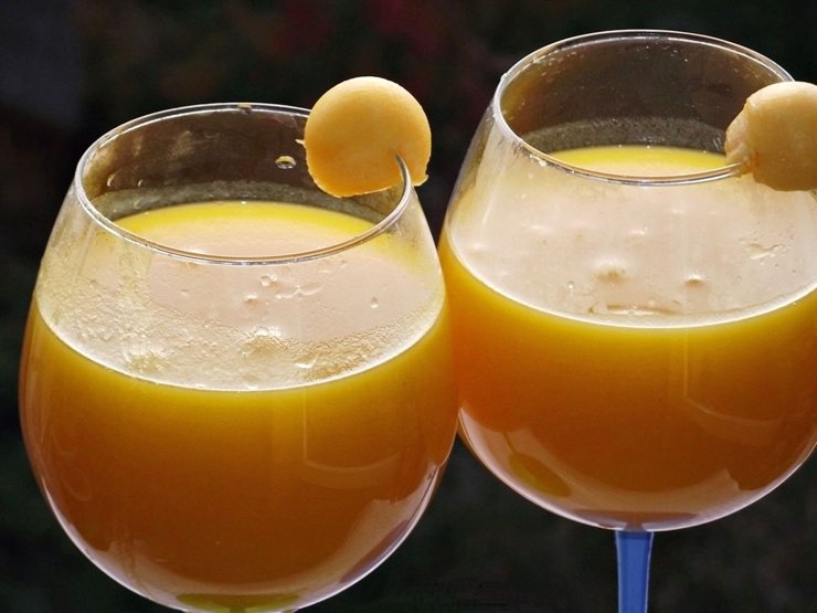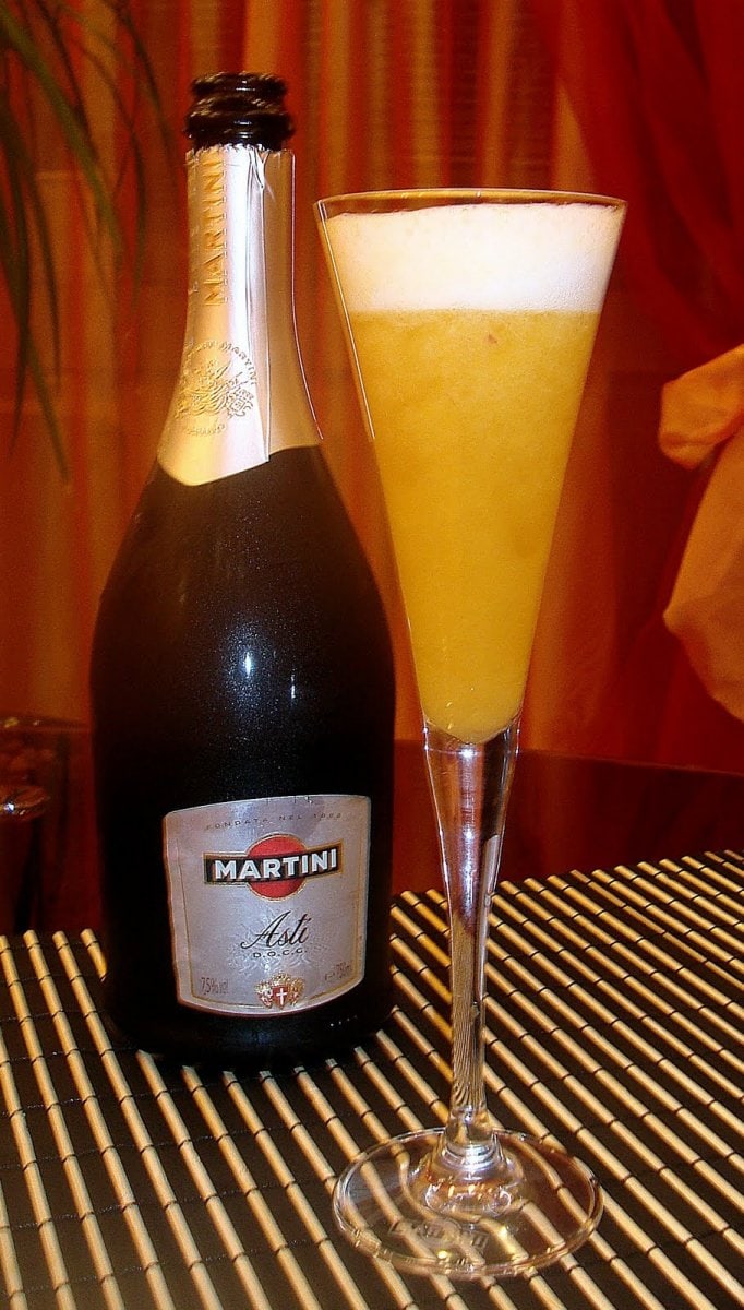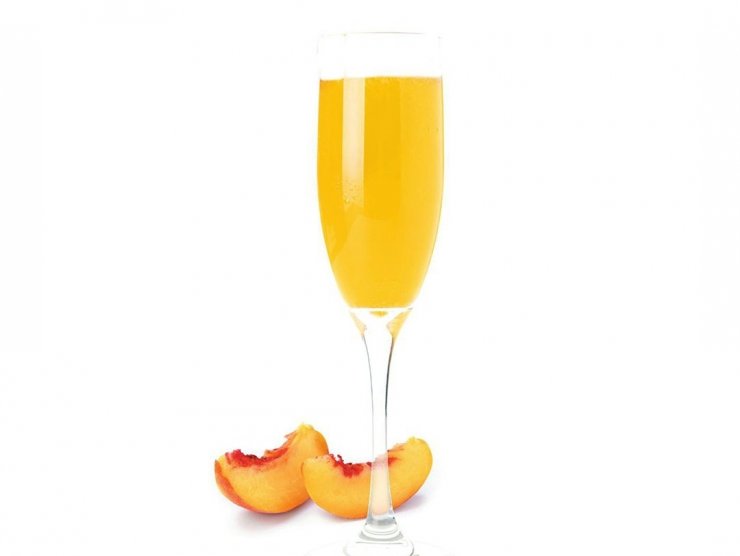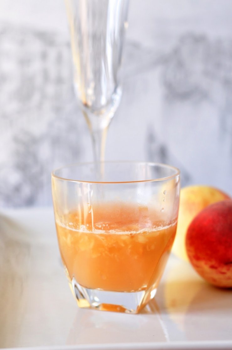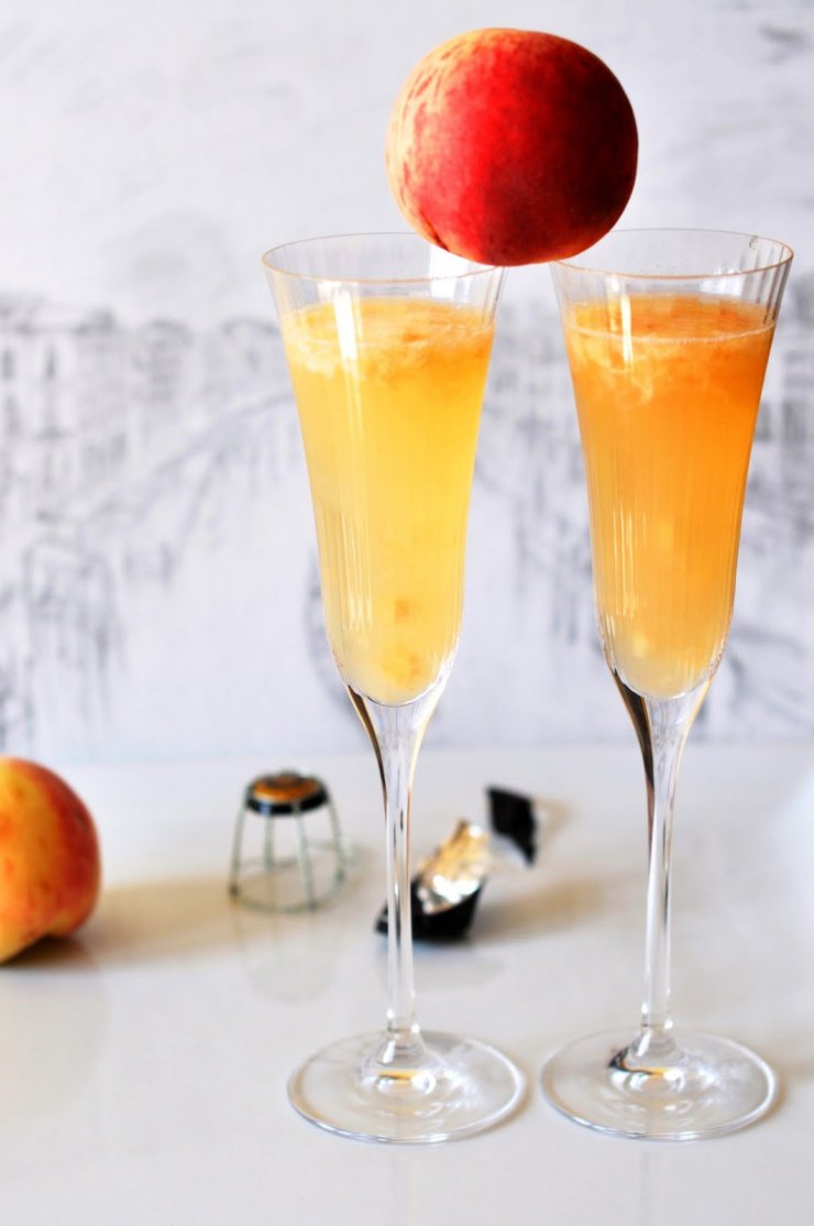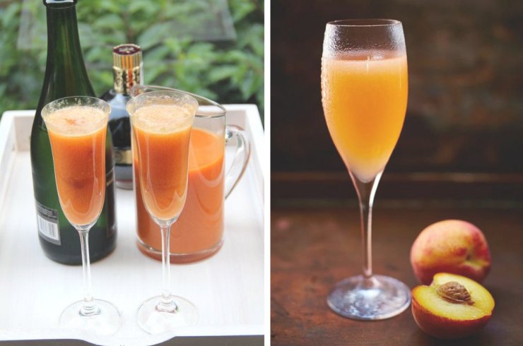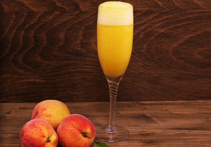 Персиковый коктейль Беллини также можно сделать на базе практически любого шампанского. Хотя в оригинальном рецепте нужно использовать игристое вино, но и с шампанским получается весьма вкусно.