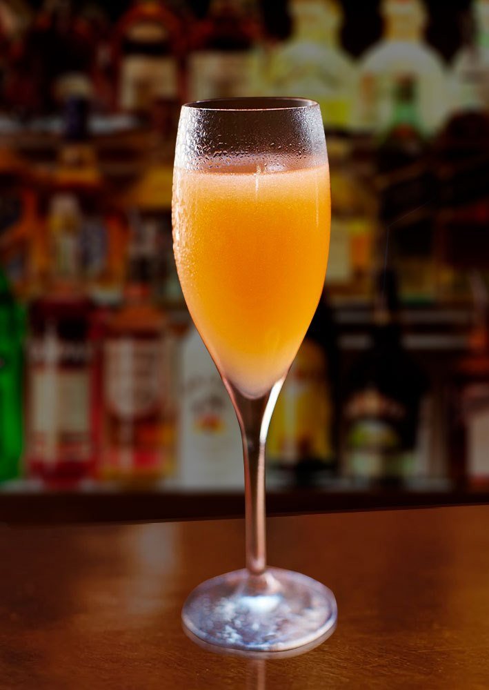 Рецепт коктейля Беллини базируется на использовании персикового пюре и игристого вина. Расцветка получается яркой персиковой, но слегка отдает нежным розовым тоном. Вкус базируется на персике.