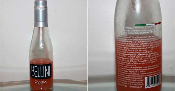 В продаже также имеется производственный вариант напитка, продающийся под торговой маркой Bellini Canella. Это тот самый настоящий коктейль Беллини в бутылке. Он состоит именно из игристого вина Prosecco и натурального пюре персика.