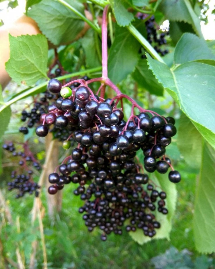 Спелые ягоды бузины окрашиваются в сочный фиолетовый цвет.