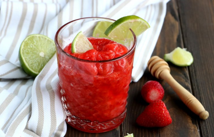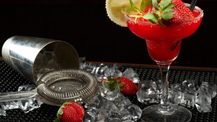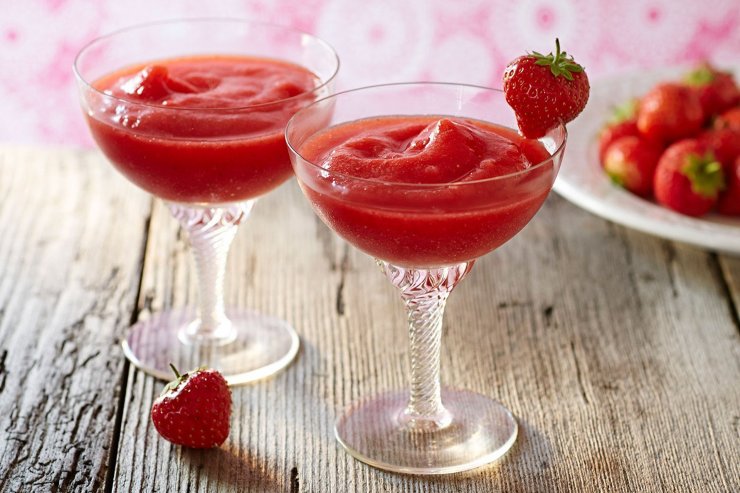 Клубничный коктейль Дайкири готовится еще проще. В его составе лед просто заменяется свежезамороженной клубникой.