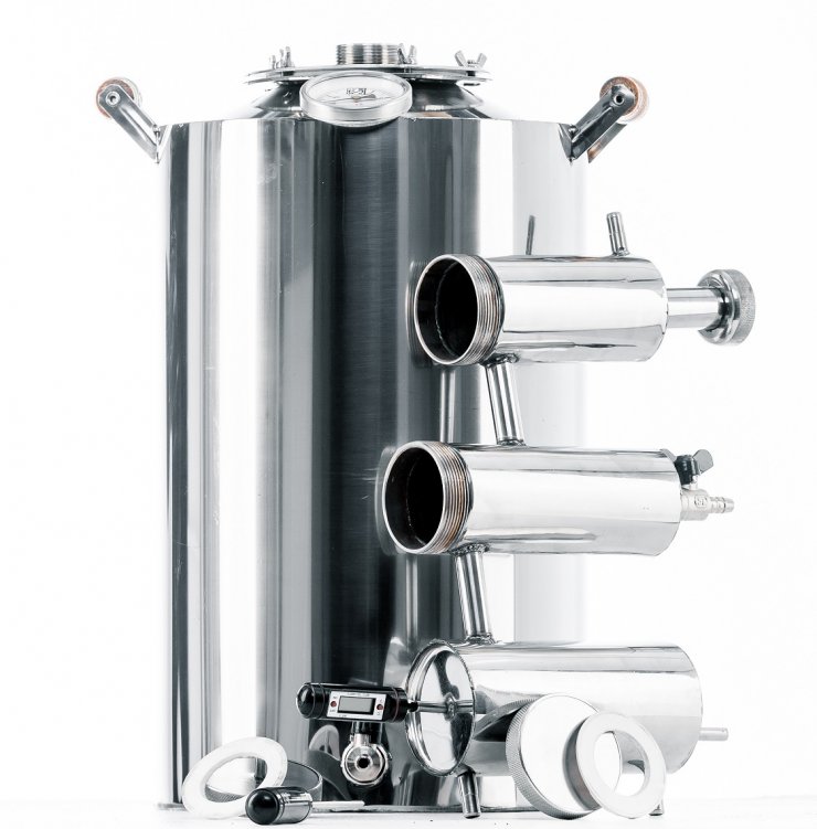 Куб для перегона жидкости – по сути это большая ёмкость, где спиртосодержащий продукт проходит процесс медленного нагревания. В свою очередь он бывает: прямого нагрева, с ТЭНом или с наличием пароводяного котла.