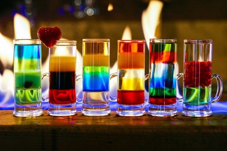 Так же известно, что коктейли делят на слабоалкогольные, тропические, шоты и лонг-дринки.