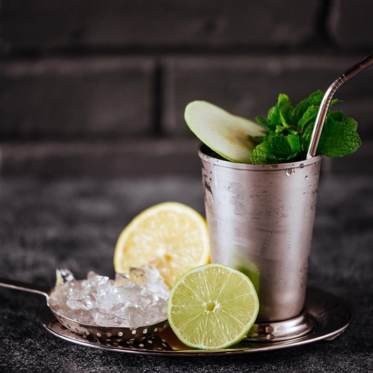 Главные ингредиенты коктейля Джулепа в то время-мята и бурбон. Также обязательно было добавление крошённого льда и сока.