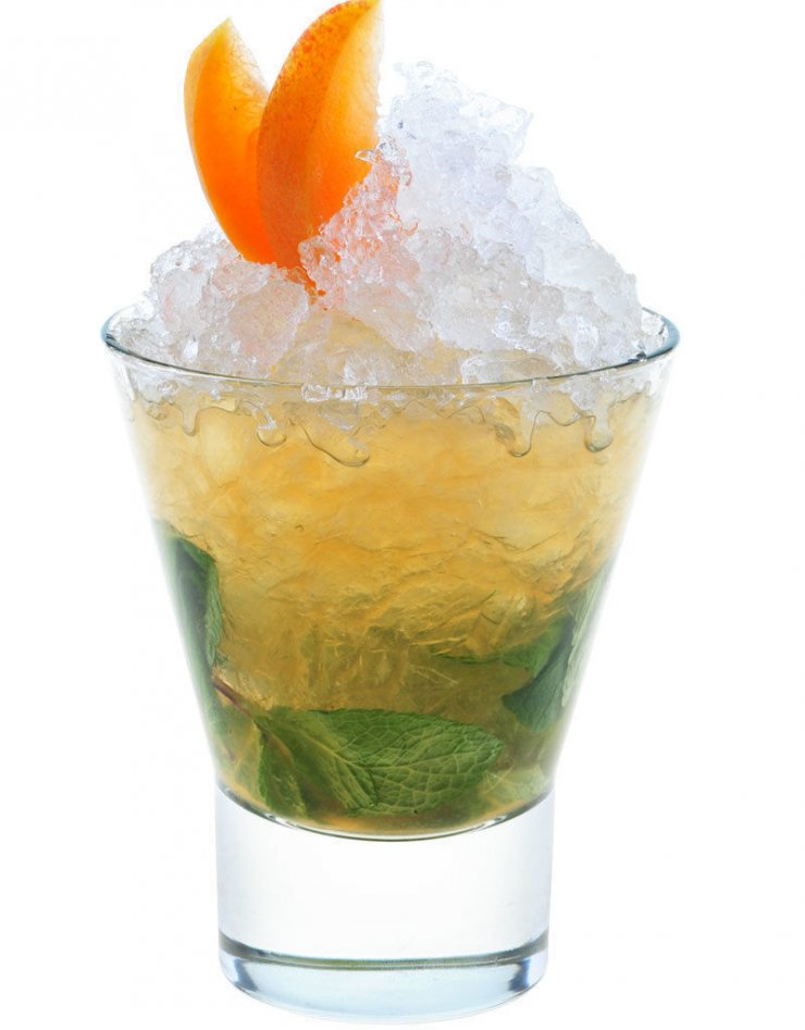 Бармены не стеснялись смешивать со льдом, мятным сиропом и водой — водку, джин или коньяк. Но многие в то время любили Джулеп на основе бренди, с добавлением сахара, свежей мяты, персика и крошенного льда.