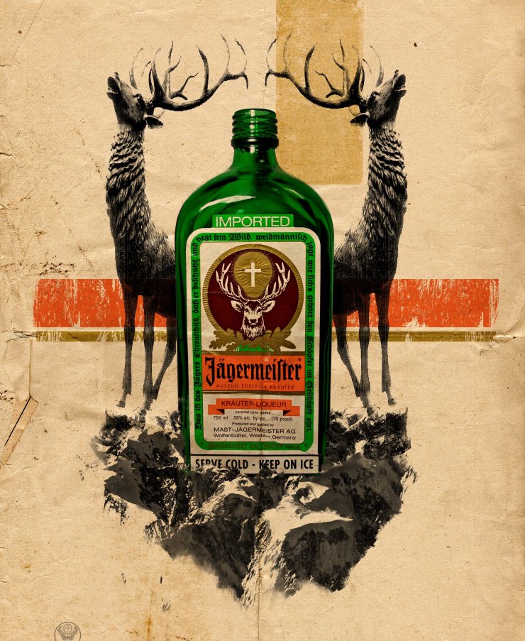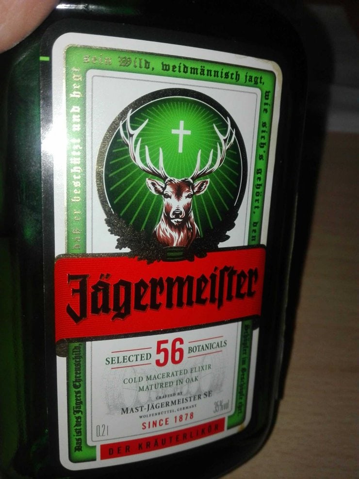 Егермейстер — это немецкий бальзам на травах. Название переводится как «Старший егерь». На фото егермейстера мы видим оленя (символ охоты) с крестом между рогов. Подобное изображение дань легенде, по которой граф Гумберт, потерявшей любимую супругу при родах, для того чтобы отвлечься от горя часто ходил на охоту и в один из дней повстречал на лесной тропинке белого красавца-оленя с ослепительным крестом меж могучих рогов.