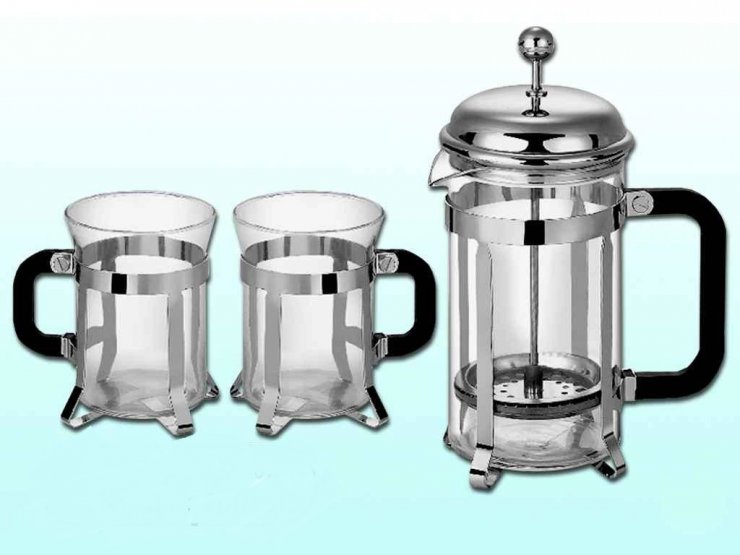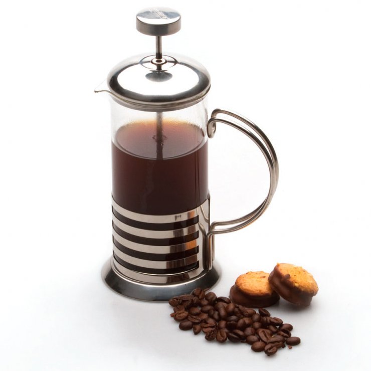 Френч пресс — это такой специальный кухонный прибор, он предназначен для скорейшего заваривания чая или кофе. Люди предпочитающие эти напитки утверждают, что кофе приготовленный в этом приборе значительно отличается от того, который готовился в турке.