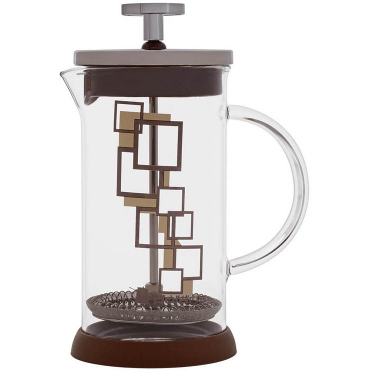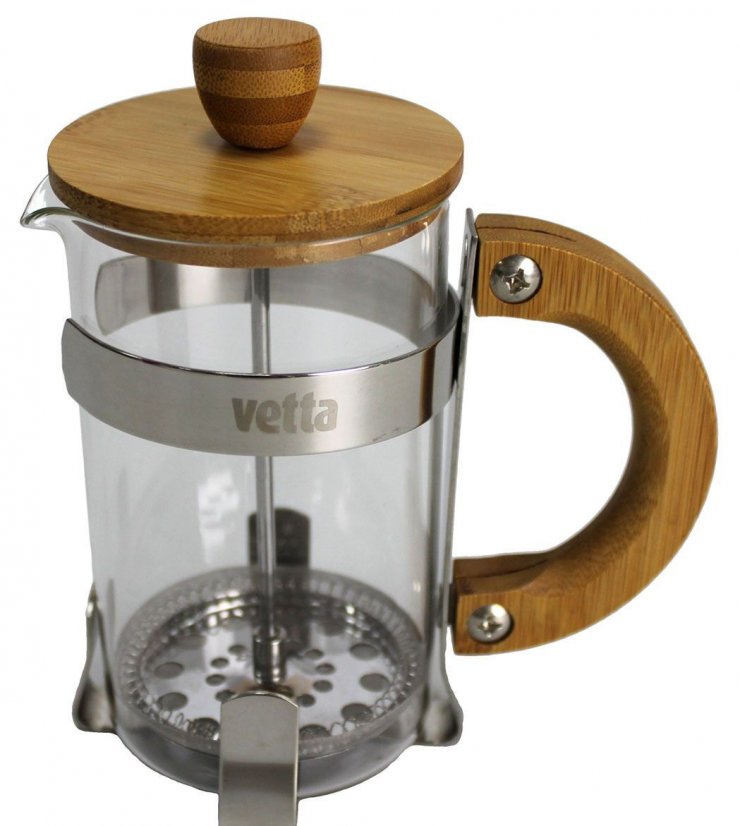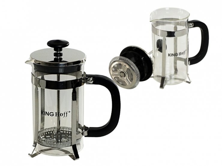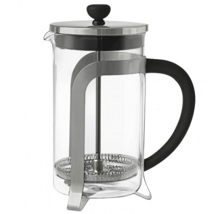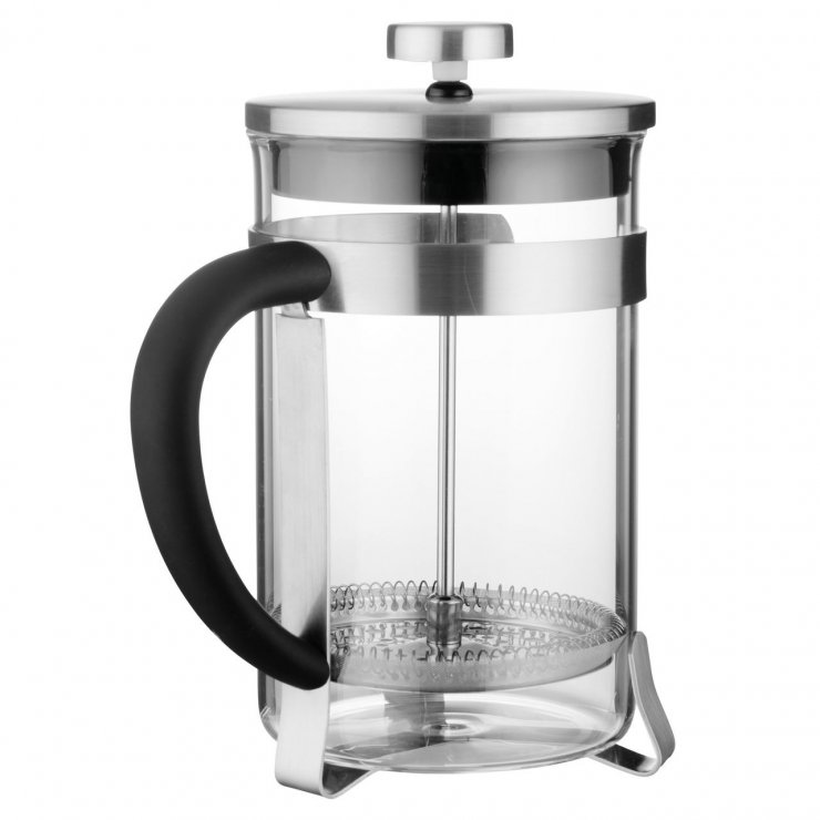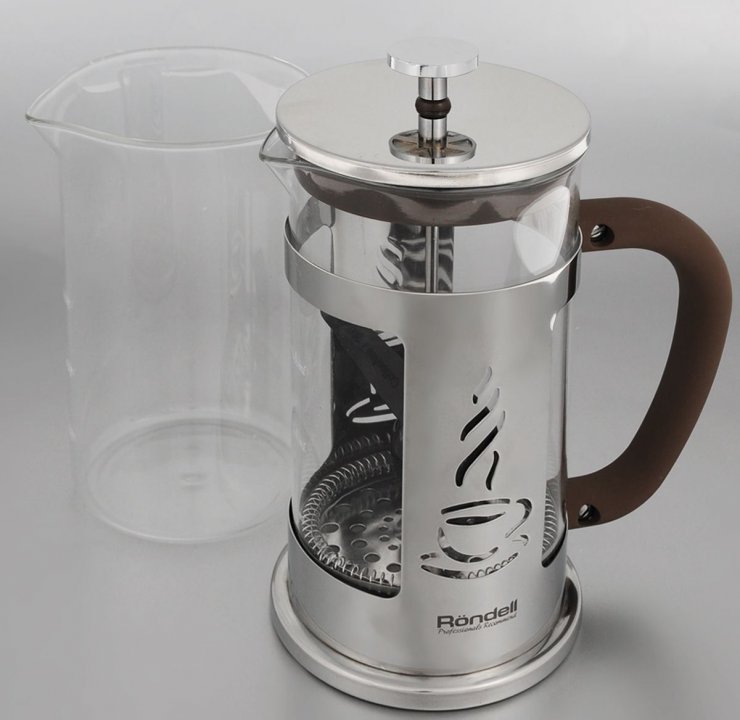Колба изготовлена из стекла, такая особенность позволяет наблюдать за приготовлением напитка. К крышке прикрепляется специальный поршень, он необходим для отжима.