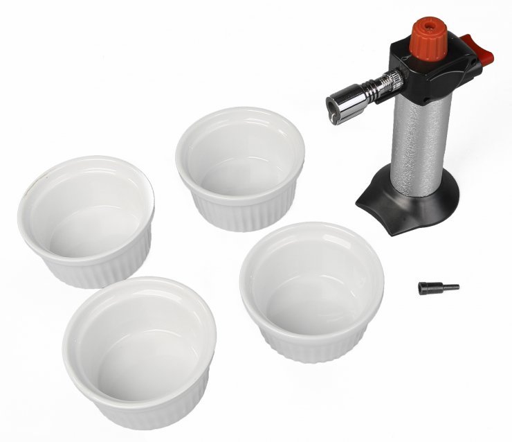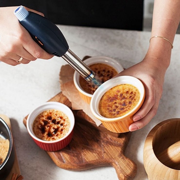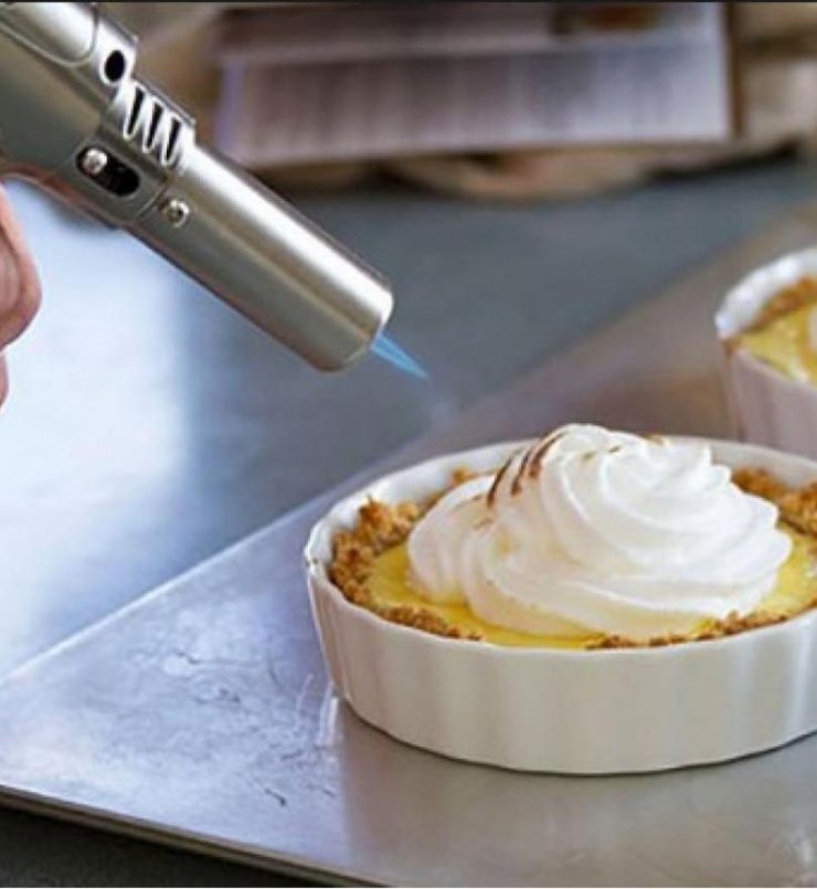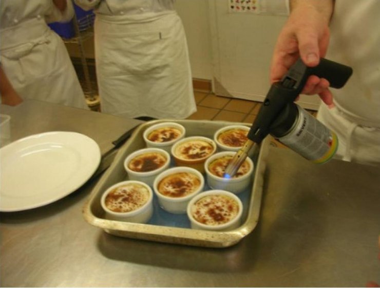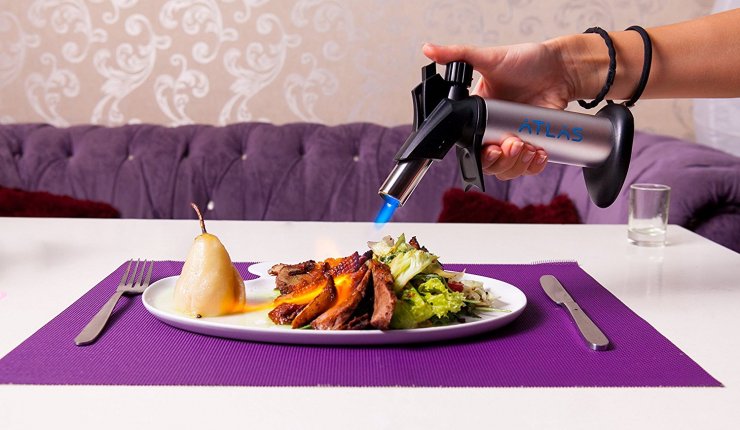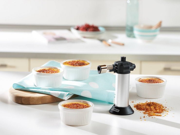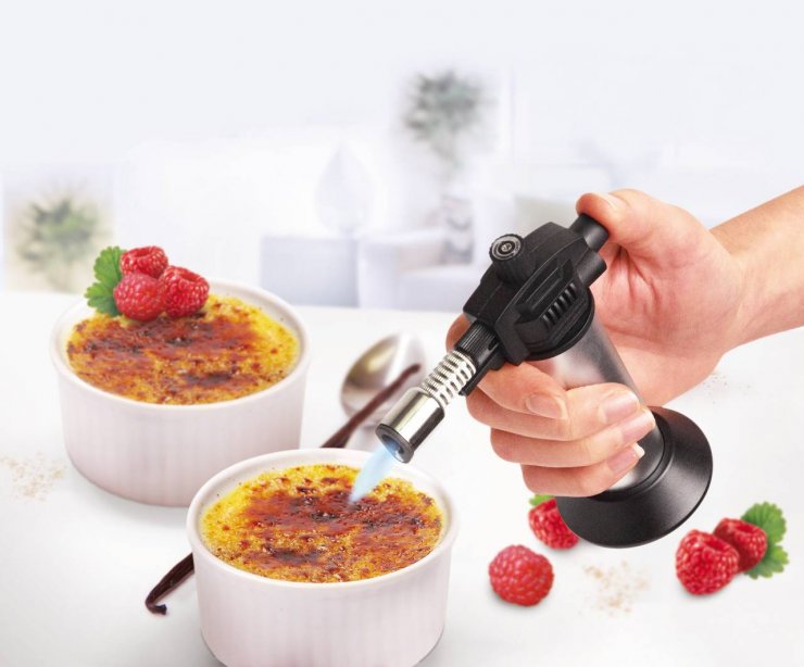 С помощью интенсивного пламени горелки можно на скорую руку придать блюду румяную корочку либо расплавить сахар до карамельного состояния.