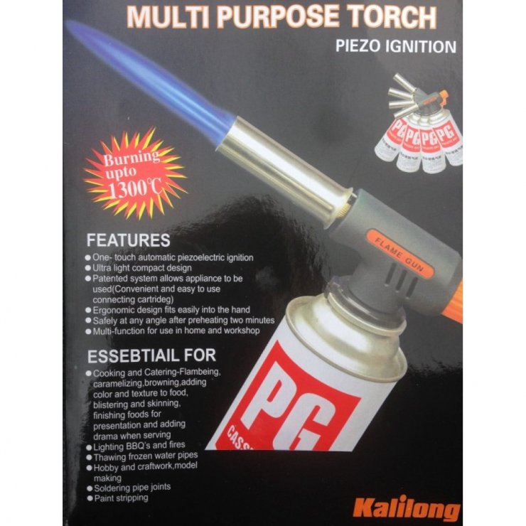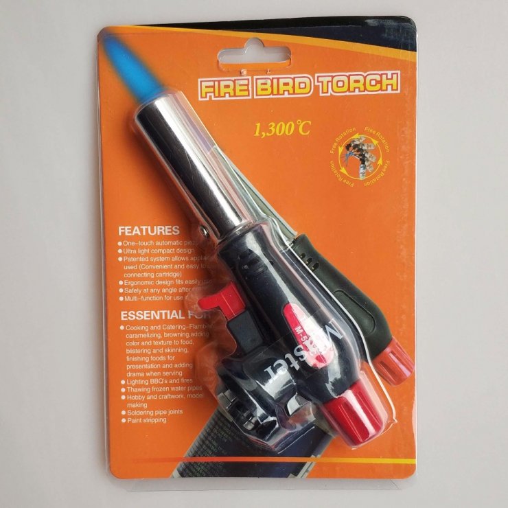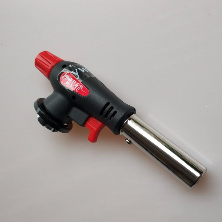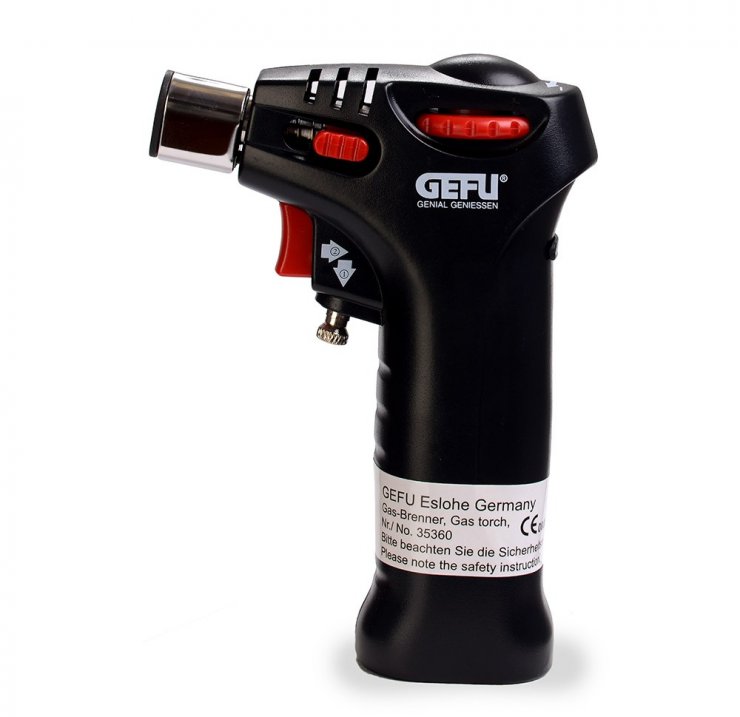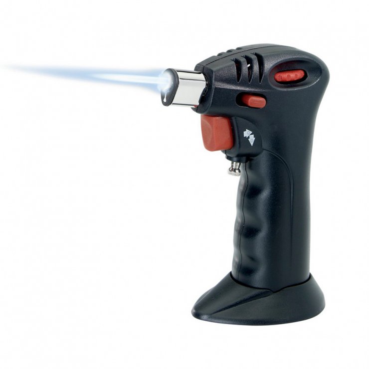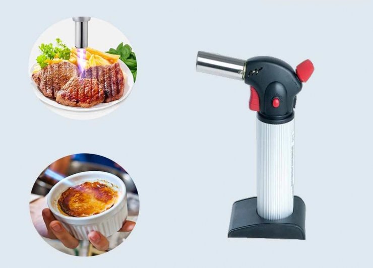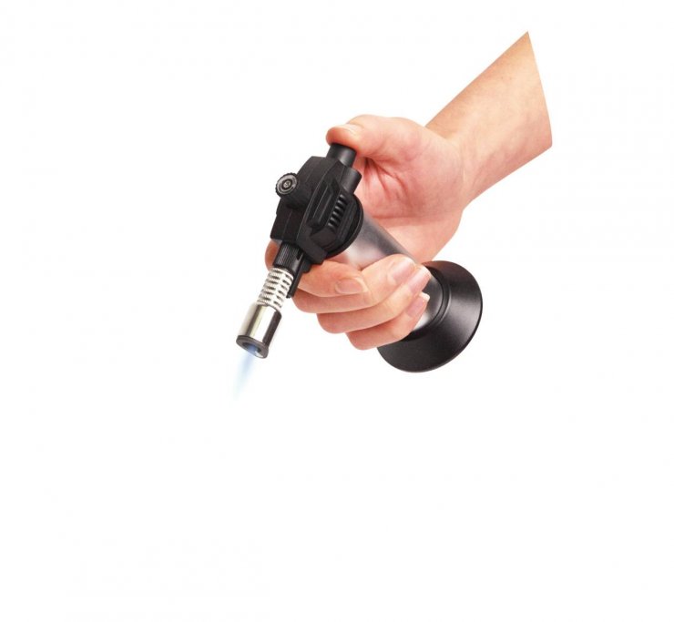 Внешне кулинарная горелка похожа на пистолет, так как состоит из комфортной для руки держателя и, наподобие ствола, насадки.