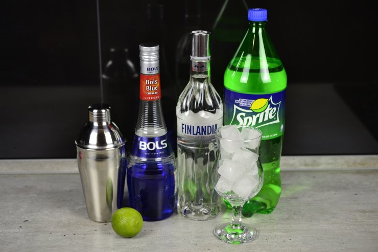 Дабы замешать безалкогольный коктейль Голубая лагуна, понадобится:
