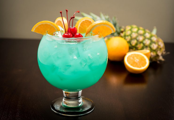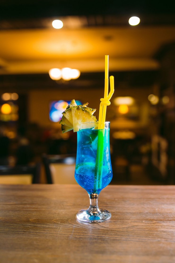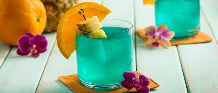 Если посмотреть на фото коктейля Голубая лагуна, то можно увидеть, что чаще всего готовый продукт профессиональные бармены украшают ананасной долькой, либо кусочком лимона или лайма.