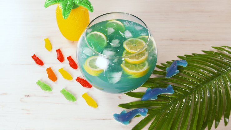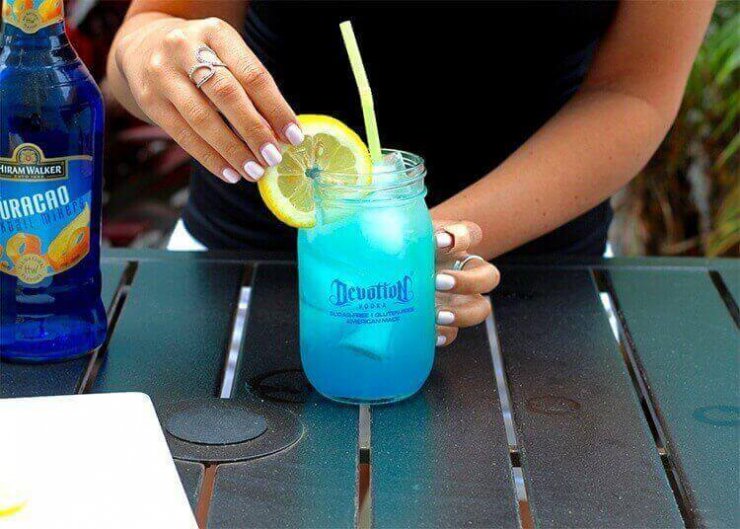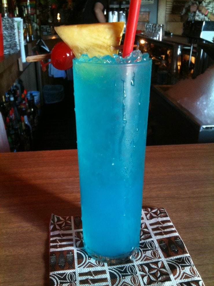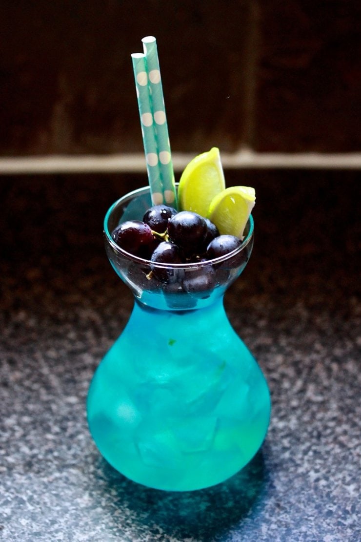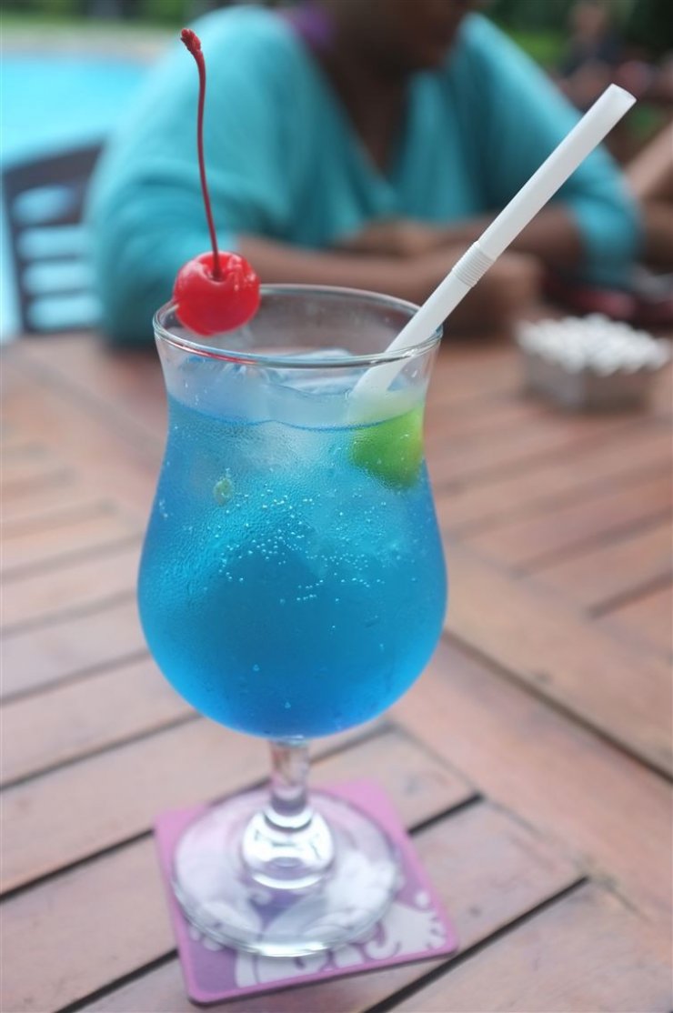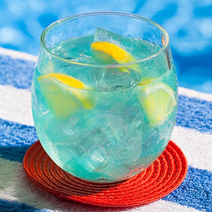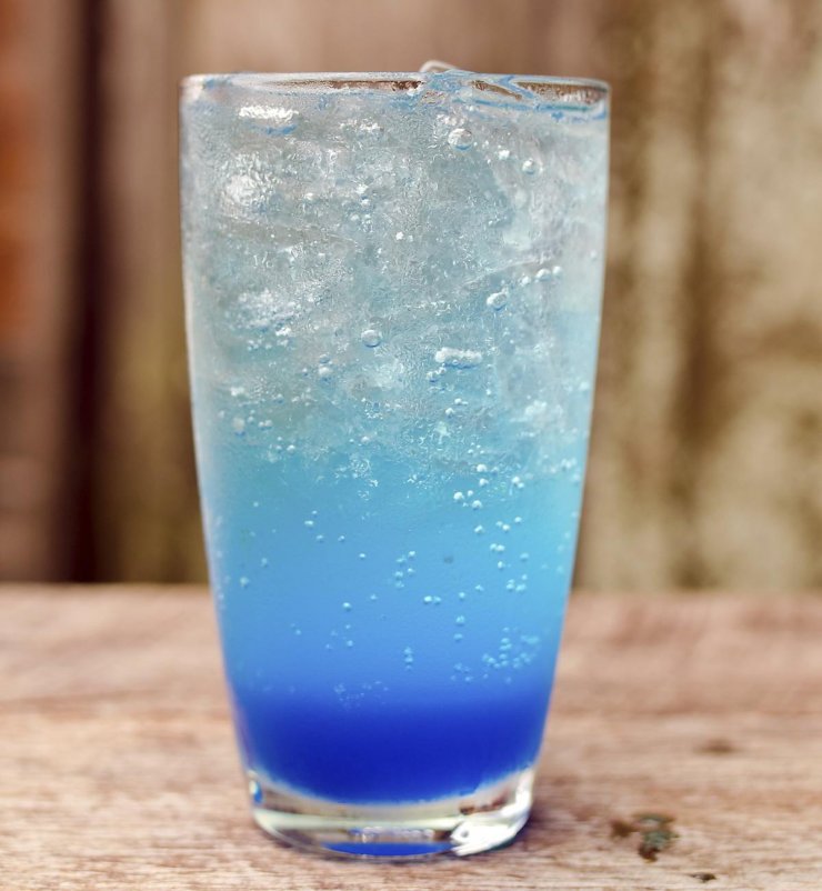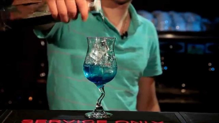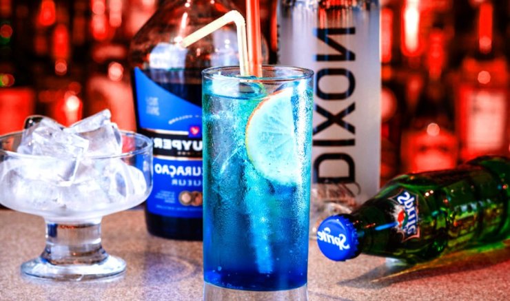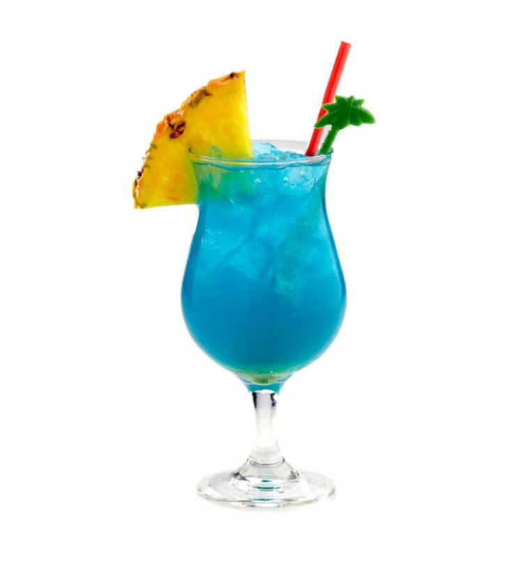 Рецепт алкогольного коктейля Голубая лагуна, помимо водки и ликёра «Блю Кюрасао», предполагает немного газировки вроде «Спрайта», немного льда и дольку ананаса, используемую как украшение или «закуску».