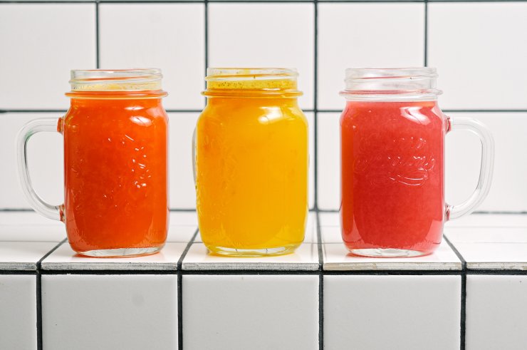 В отдельный стакан или чашку выжимается сок из нескольких лимонов или апельсинов (для лимонов сахара потребуется больше). Туда же кладутся дольки этих фруктов вместе с кожурой, придающей неповторимый аромат.