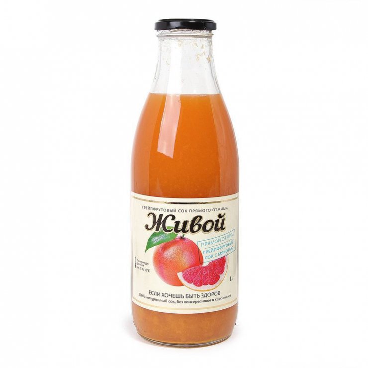 Диетический грейпфрут прозвали фруктом долголетия из-за высоко содержания полезных веществ: минералов, антиоксидантов, витаминов В и С. В отличие от апельсинового свежевыжатый грейпфрутовый сок пользуется меньшей популярностью среди потребителей из-за горьковато-кислого привкуса.