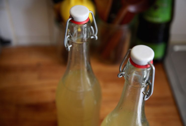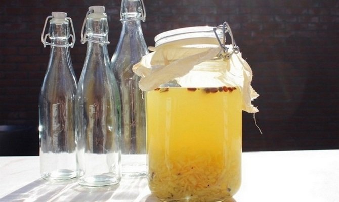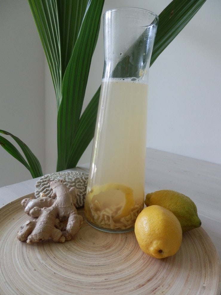 Ингредиенты: 1 стакан сахара; 50 граммов свежего имбирного корня; 0,5 стакана лимонного сока; половина чайной ложки сухих дрожжей; 2 литра воды.