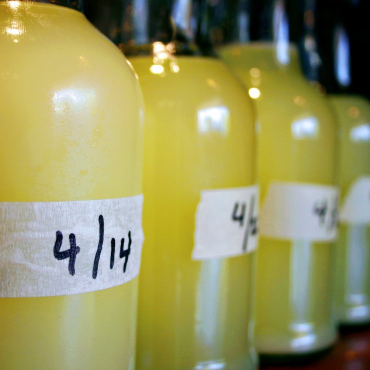 Простерилизовать банку для брожения. Очистить и натереть корень, смешать его с сахаром и дрожжами, затем добавить лимонный сок.