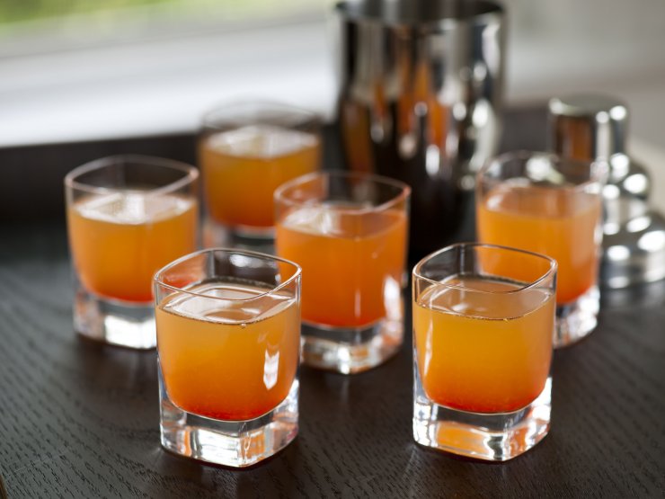 Фруктовые соки и водку заливаем в шейкер и хорошо смешиваем, потрясти нужно как минимум 3 минуты. Не забудьте закинуть в шейкер лед, благодаря ему напиток будет охлаждаться во время встряхивания.