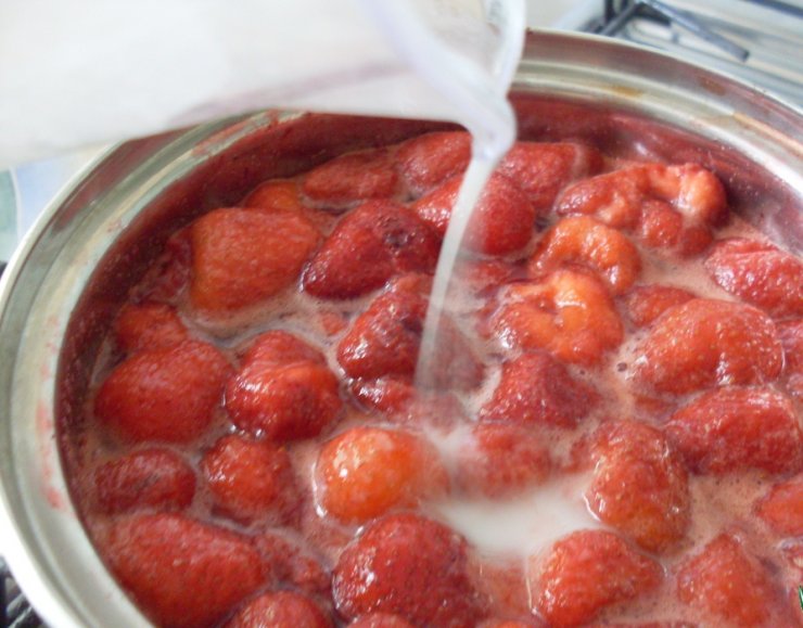 После полного растворения сахара остудить до комнатной температуры. Добавить в кастрюлю с сиропом нашу клубнику.