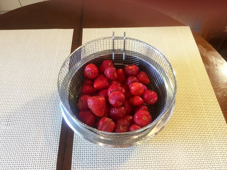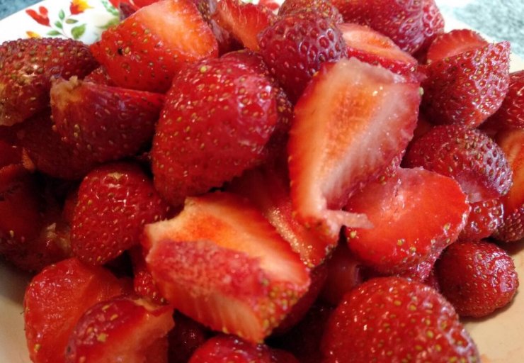 Хорошую качественную и клубнику необходимо очистить от ножек плода, тщательно помыть. Когда наши ягоды подсохнут разрезать их на 4 части.