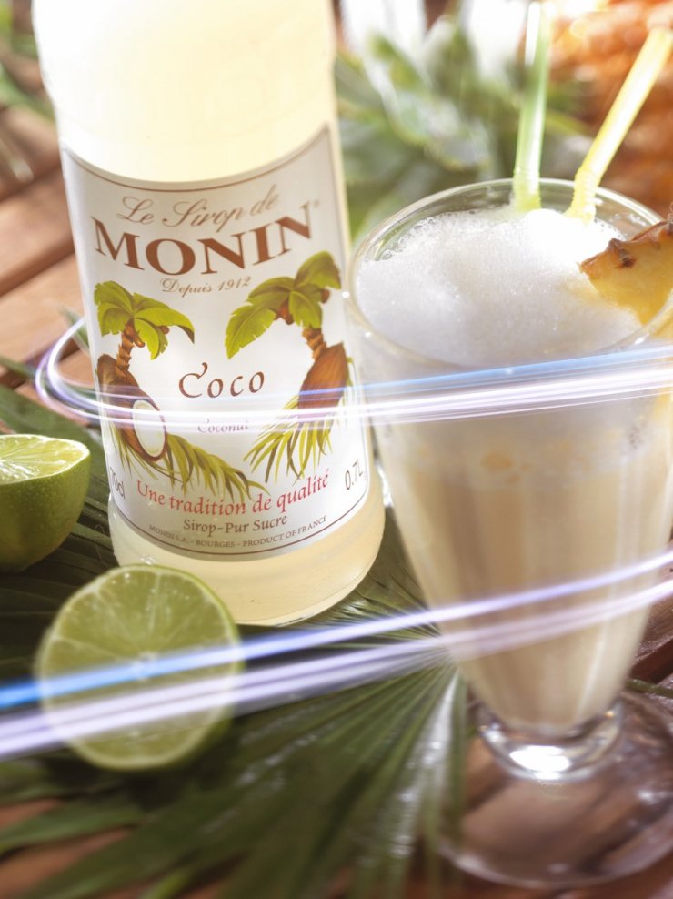 В алкогольные коктейли, заказанные в заведении, скорее всего окажется добавлен покупной кокосовый сироп монин. Если же коктейль с кокосовым сиропом подается ребенку или готовится в условиях дома, можно применить самодельный сироп.