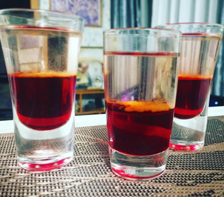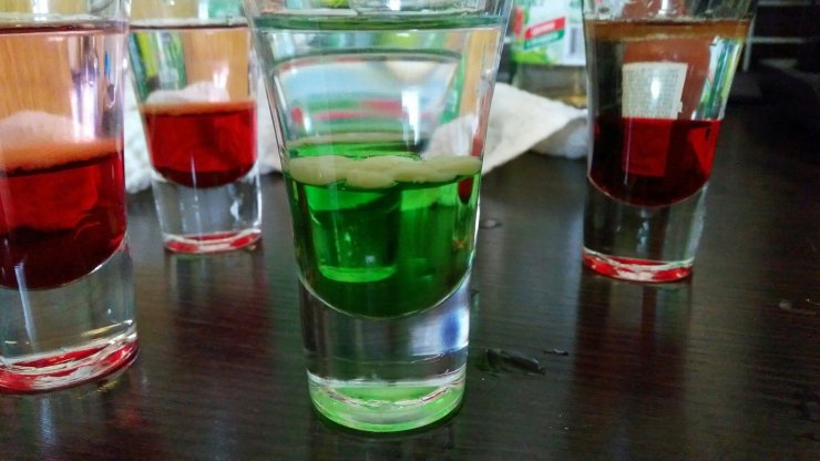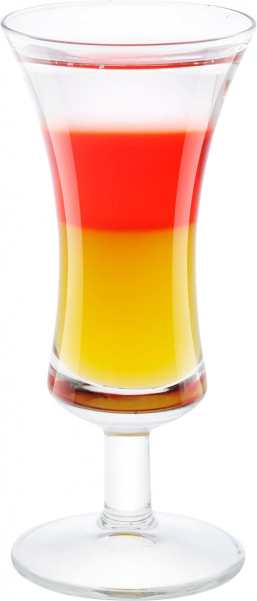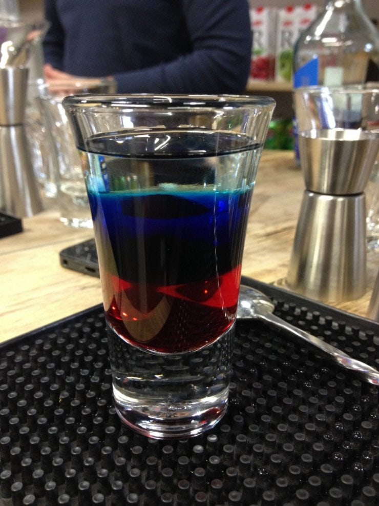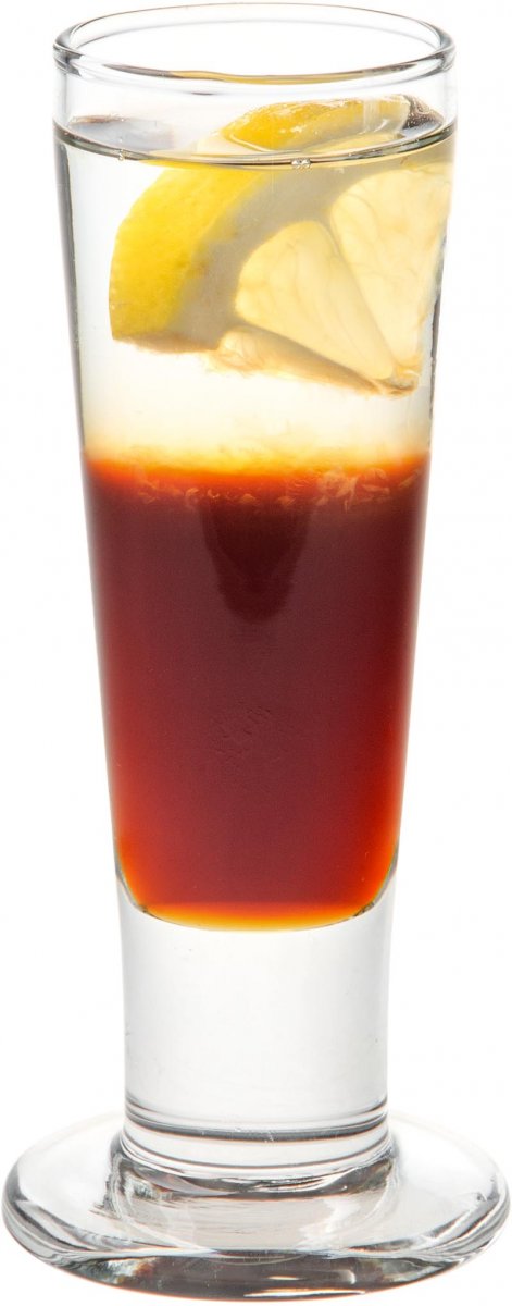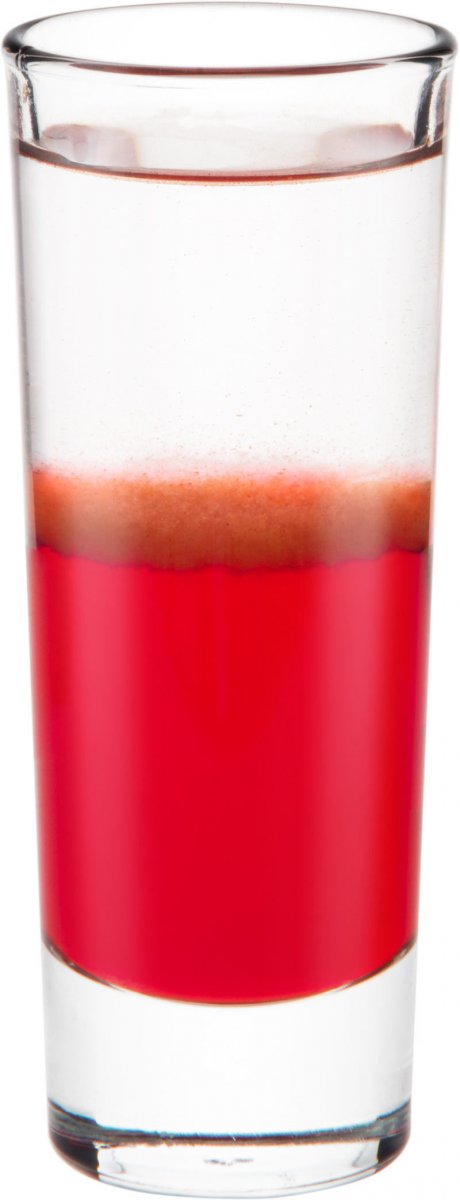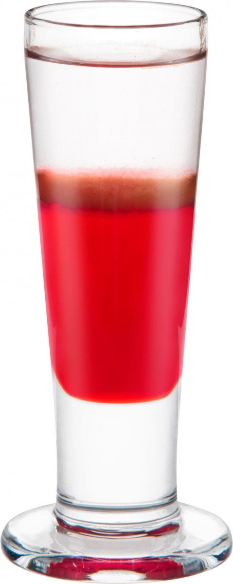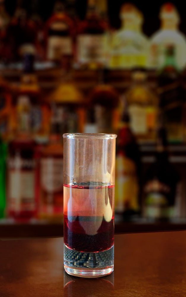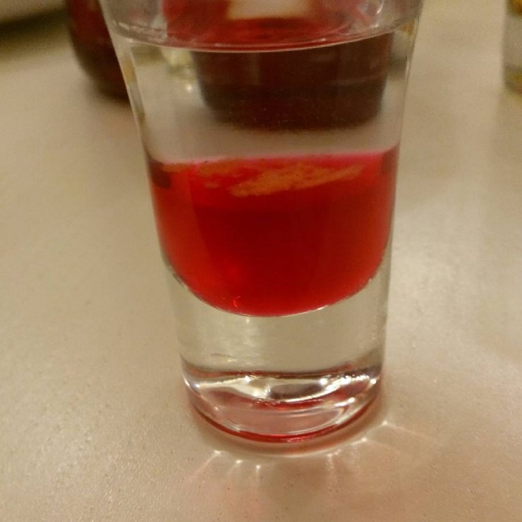 - Сверху при помощи коктейльной ложки уложите небольшой слой водки.