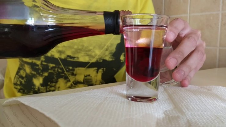- Необходимо налить полную стопку гранатового сиропа.