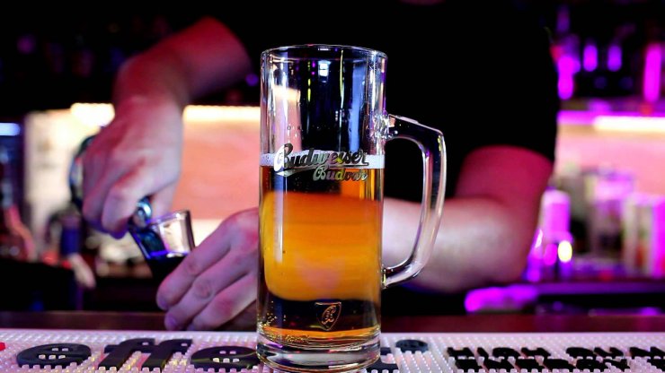 Необходима кружка объемом пол-литра. На дно ставится рюмка с водкой или другим крепким спиртным, и в кружку наливается темное пиво.