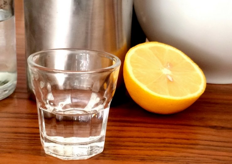 - Немного лимонного сока добавляем в бокал.