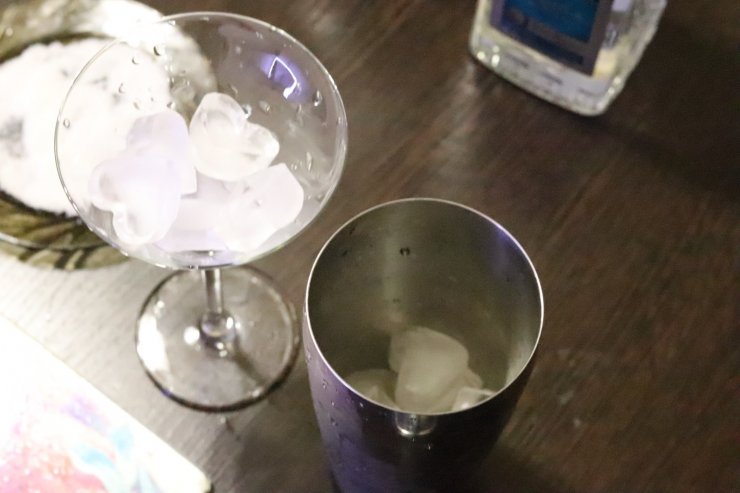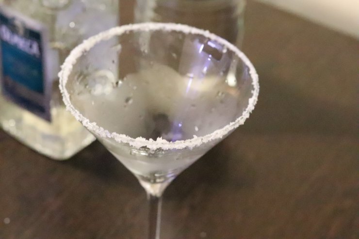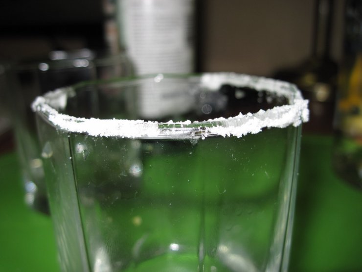 Первым делом также сделайте на нем окантовку из соляной корочки, как это делается вы можете почитать выше. Затем уберите бокал на 10-15 минут в морозильник для охлаждения.