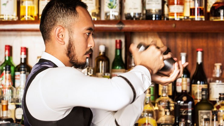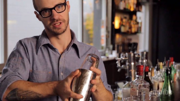 Все напитки заливаются в шейкер и хорошо перемешиваются, также добавьте лед, во время тряски напиток сможет охладиться.