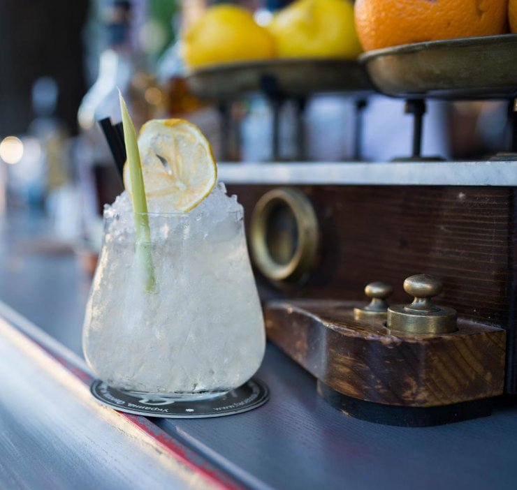 Через специальное сито вылейте из шейкера напиток в бокал, тогда кусочки льда получится отфильтровать. Осталось только вставить соломинку в бокал и украсить долькой лайма или лимона.