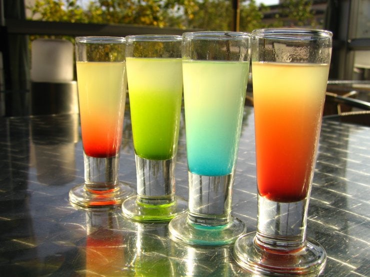 Слоистый коктейль уже сам по себе выглядит красиво и необычно. Напиток пьется залпом и, чаще всего, обходится закуски, так как последним слоем его является сладкий ликер или самбука.