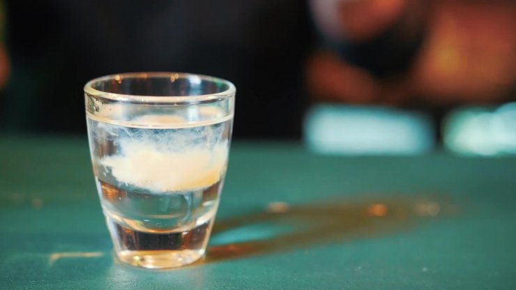 Если абсент вливать в стопку в последнюю очередь, то получится немного другая композиция.