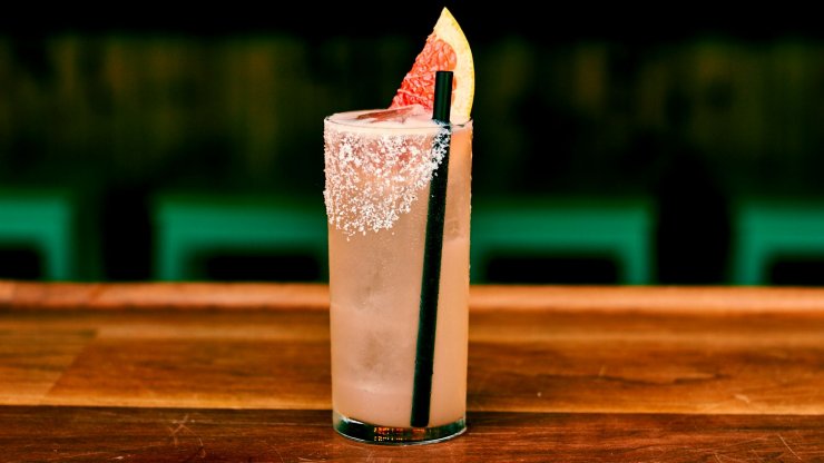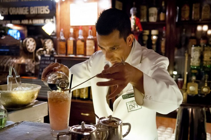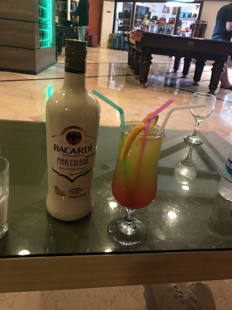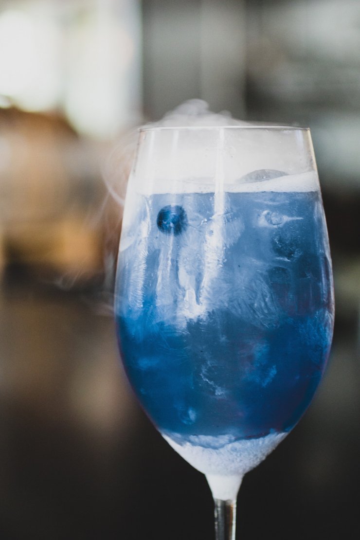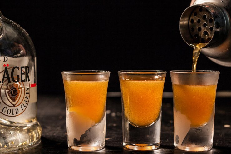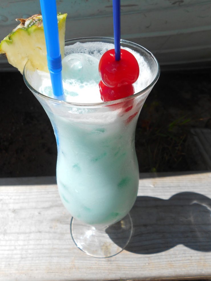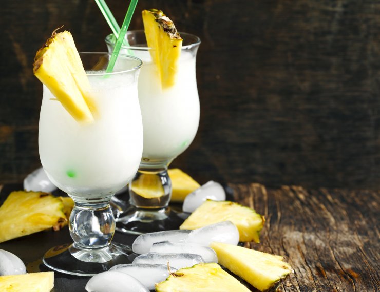 После этого в «замес» добавляется немного ананасового сока, лёд – и коктейль готов.