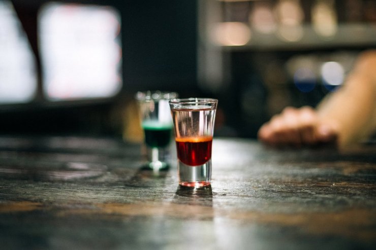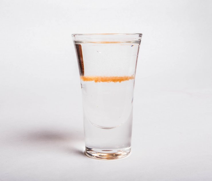 - Красно-оранжевые капли будут опускаться до середины спиртного.