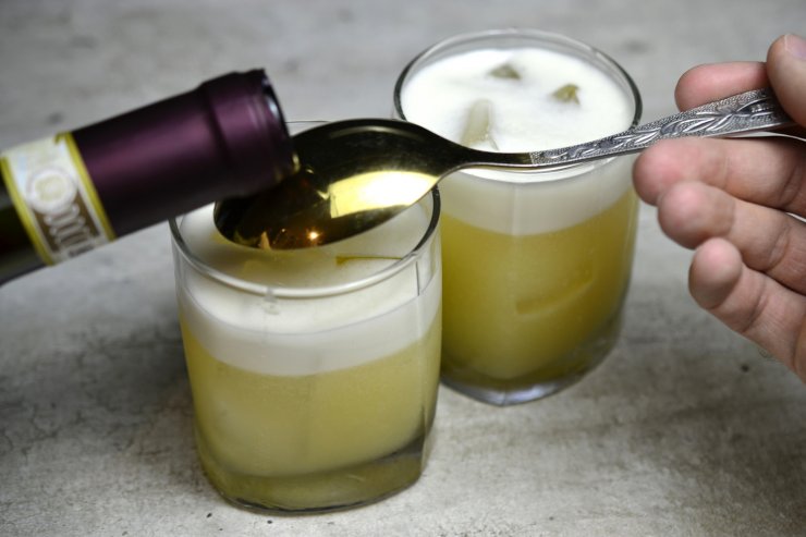 - Спиртному добавляется лимонный сок и сахарный сироп.