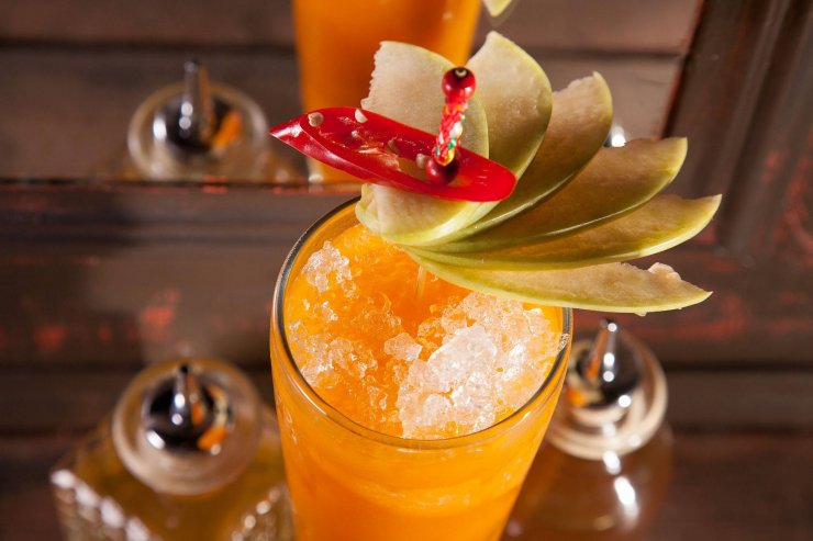 Данная вариация обладает сильным экзотическим вкусом, а благодаря соку пьется мягко, так как он маскируется алкогольный вкус.