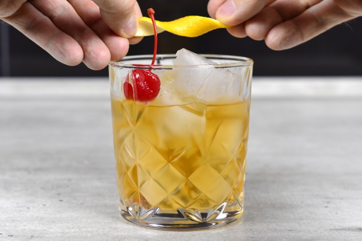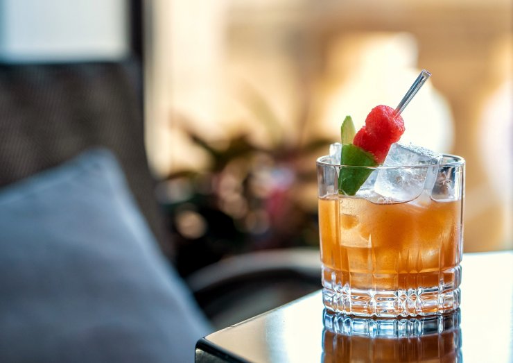 - Готовый коктейль заливаем поверх льда и оставляем на две-три минуты.