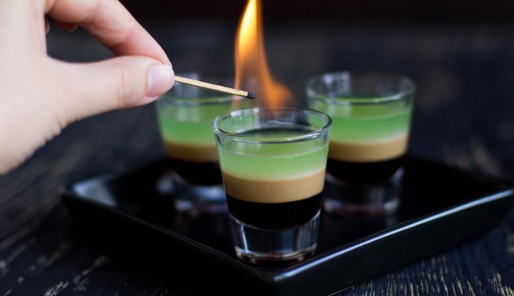 Напиток перед применением необходимо поджечь. Употреблять можно залпом, либо через соломинку, приступать необходимо с нижнего слоя.