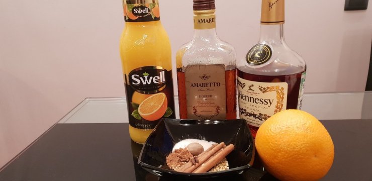 Непосредственно в бокале, смешиваются 100 мл свежего апельсинового сока и 50 мл Амаретто, добавляются кусочки льда, край бокала можно украсить долькой лимона.