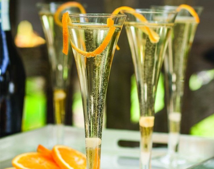 В бокале смешать 20 мл. свежего апельсинового сока и 30 мл. Амаретто, затем осторожно, чтобы не перемешать, влить в бокал полусладкое шампанское. Край бокала украсить тонкой спиралькой из цедры апельсина.