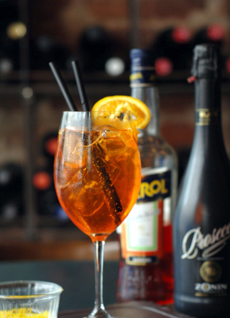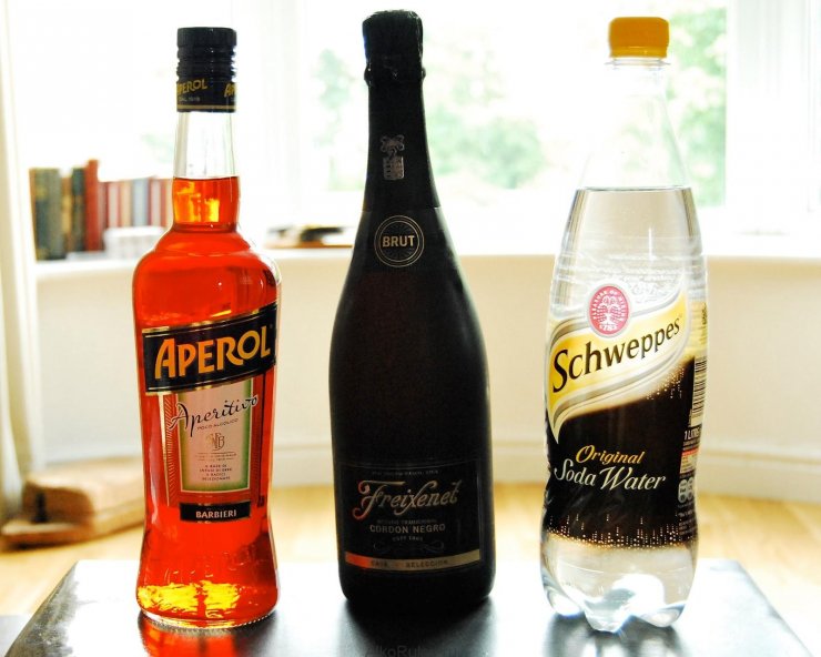Классический состав коктейлей с Апероль включает в себя качественное итальянское Вино «Проссеко» Апероль, а в качестве шипучей основы с пузырьками в последнее время используют швепс.