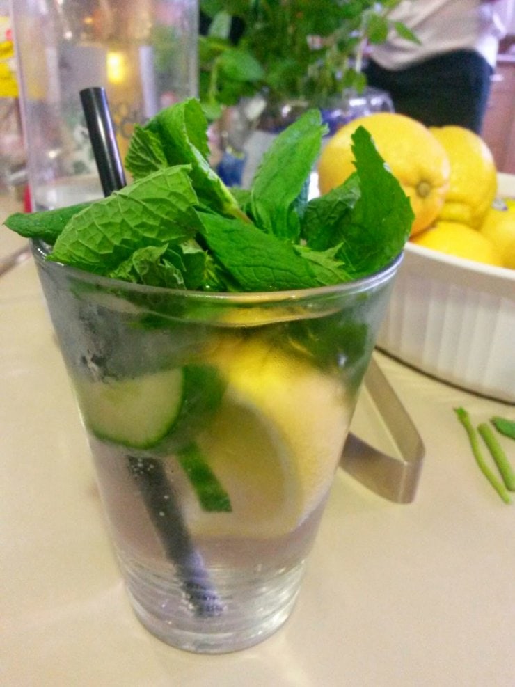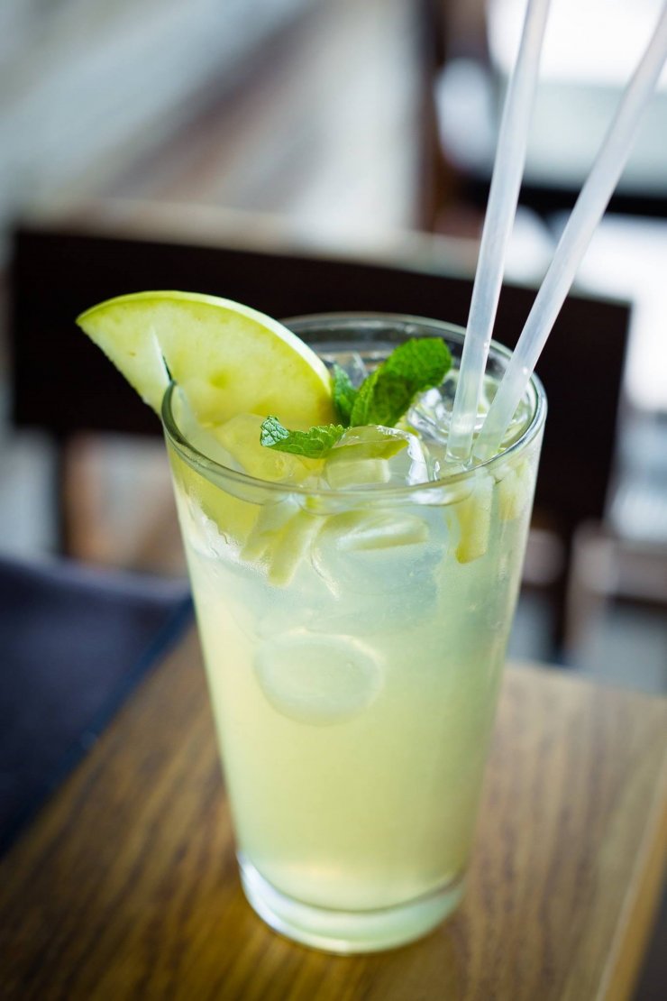В последствии смешать вместе Sprite и сироп в другом стакане и добавить к джину. И, конечно, украсить все это листиками мяты.
